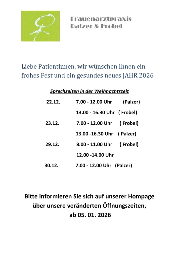 Copyright© 2019 - Frauenärztliche Gemeinschaftspraxis DM Palzer / FÄ Frobel Fachärzte für Frauenheilkunde & Geburtshilfe
