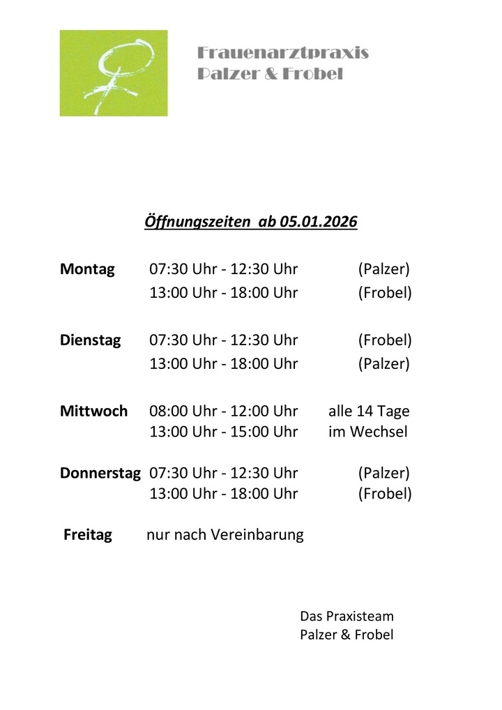Copyright© 2019 - Frauenärztliche Gemeinschaftspraxis DM Palzer / FÄ Frobel Fachärzte für Frauenheilkunde & Geburtshilfe